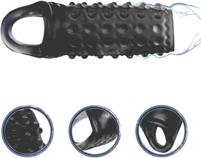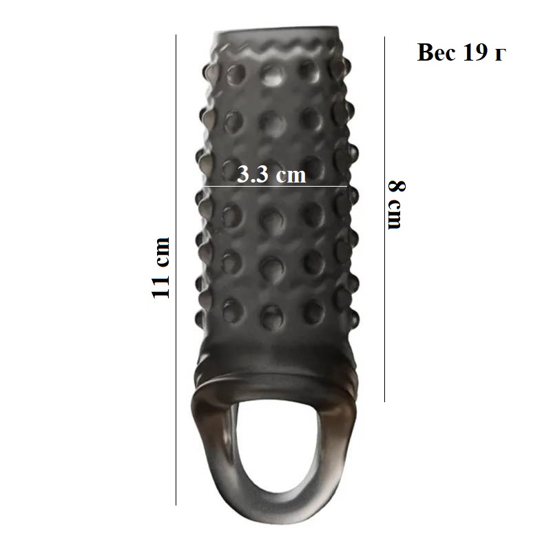 Закрытая насадка на пенис для увеличения размеров мужского полового органа. На поверхности изделия имеются небольшие выпуклости для дополнительной стимуляции партнёрши.