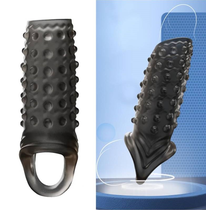Закрытая насадка на пенис для увеличения размеров мужского полового органа. На поверхности изделия имеются небольшие шипики, выпуклости и рёбрышки для дополнительной стимуляции партнёрши.